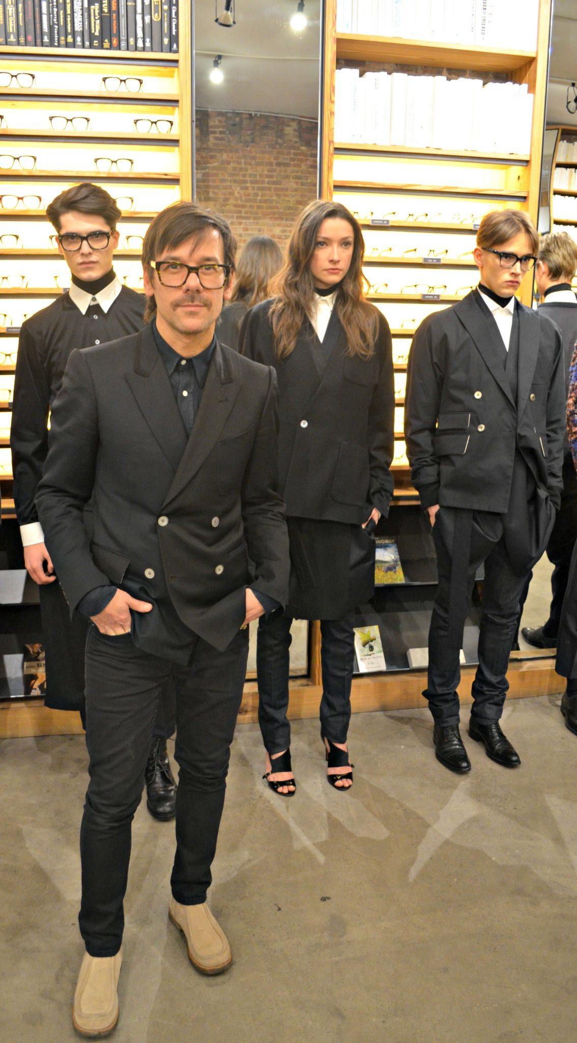 The presentation was held at the stylish and trendy eyewear brand, Warby Parker, boutique in Meatpacking District. Warby Parker eye can be seen on the models. For the Fall/Winter 2014 collection, Azzuolo mixes luxury tailoring with a downtown “cool.” It is a Saville Row meets the Lower East Side if you will. I personally loved this. I think for menswear the mix of a tailored shirt paired with a relaxed, drop-crotch, trimmed pant can create an amazing look.