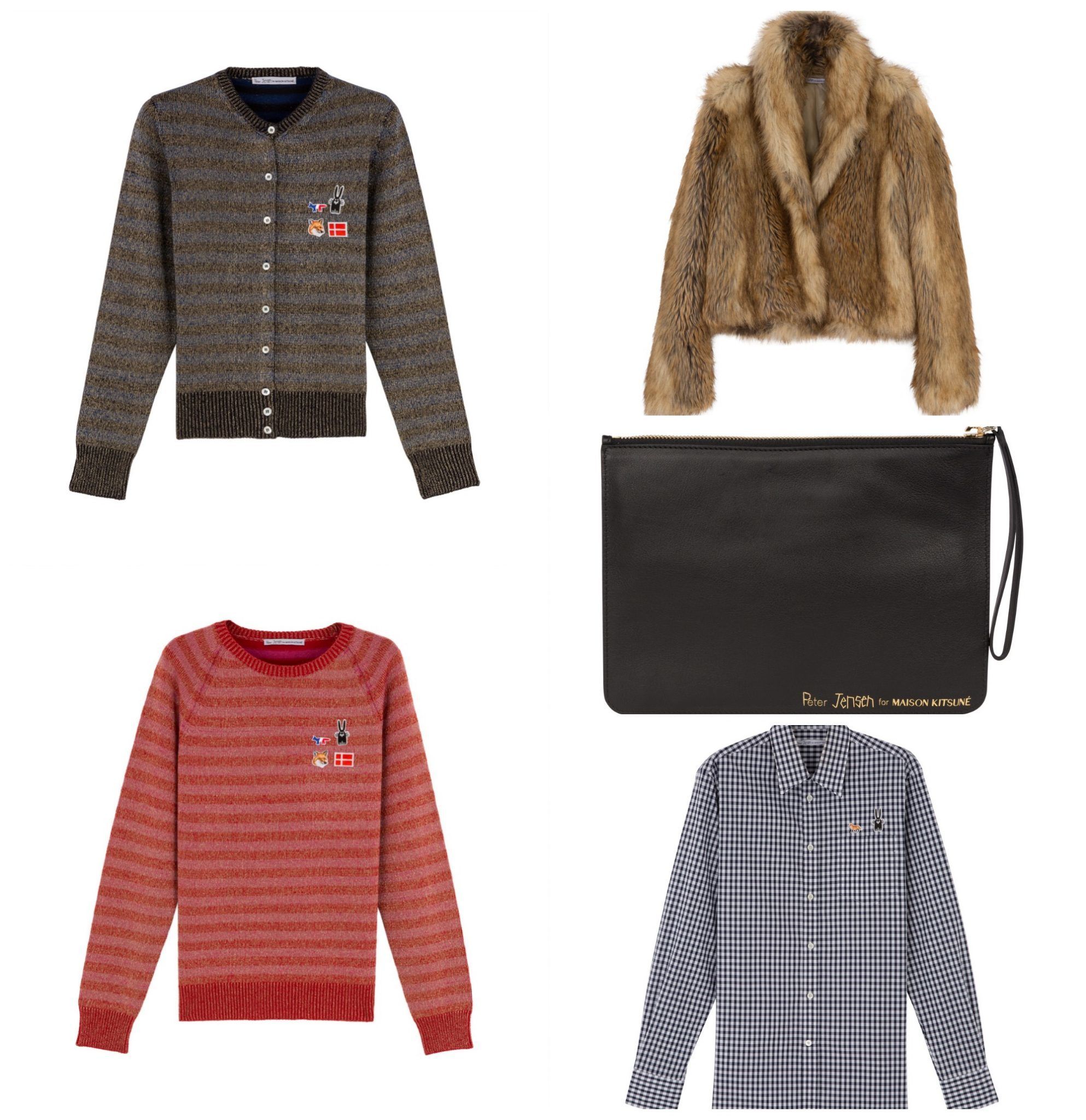 Overall, the collection is cheeky and electric which is very Maison Kitsuné. The collection is an ode to the glamor of the seventies and is accented with playful details, including a fur jacket, cardigans, striped sweatshirts and dresses for women, as well as a gingham shirt and cream-colored corduroy suit for men. The capsule also features a chic wallet and purse, both cheerfully branded with Peter Jensen’s iconic rabbit and Maison Kitsuné’s beloved fox, perfect additions to this seasonal special collection and ideal gift options for the fun-loving friends on your holiday list.