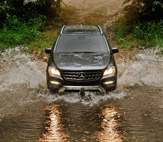 The stability in the ML350 is amazing in turns as well as when driving straight ahead, even over uneven surfaces and over snow, ice or gravel, and the car is drives smooth and the Active Curve System prevents the car from tipping over even on the craziest curves, and keeps the passengers from shifting around on the backseat. We put this one on the test by driving an off-road course..