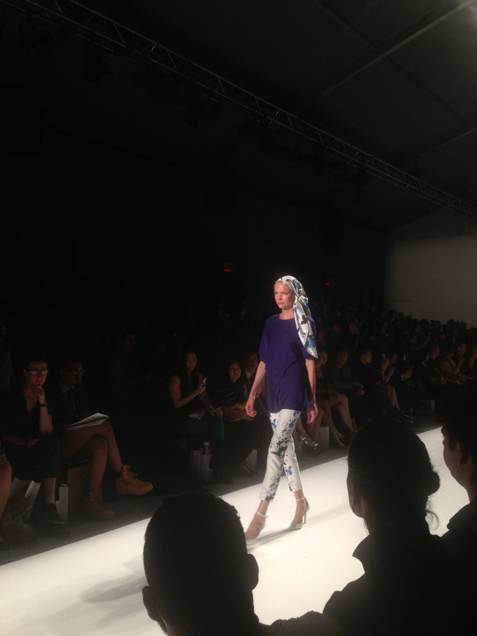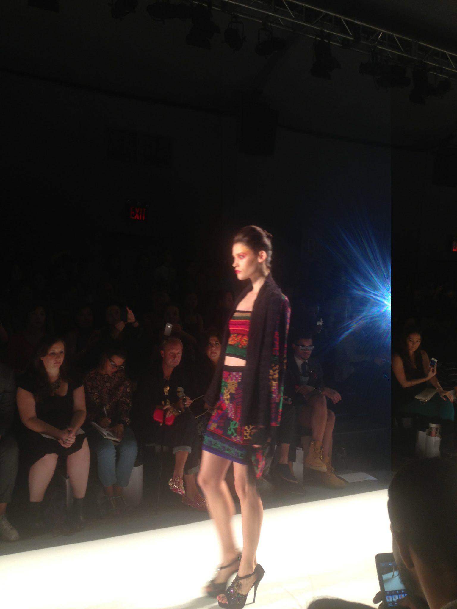 The Ellassay brand was the first of the evening to send its spring 2014 collection down the runway. I was highly impressed with the collection and can see it in the wardrobe of many New York women. The collection started off with a simple color palette of blacks and whites and transitioned into pale pastels, perfect for the spring season. The collection was filled with cigarette pants, tailored blazers, silk tops, and outerwear. The brand gets its inspiration from the Champs Elysee in Paris and France as a whole. This aesthetic is very evident as the design consultant, Jean Paul Knott, lead product R&D as YSL for 12 years. This brand is definitely one to check out and keep an eye on!