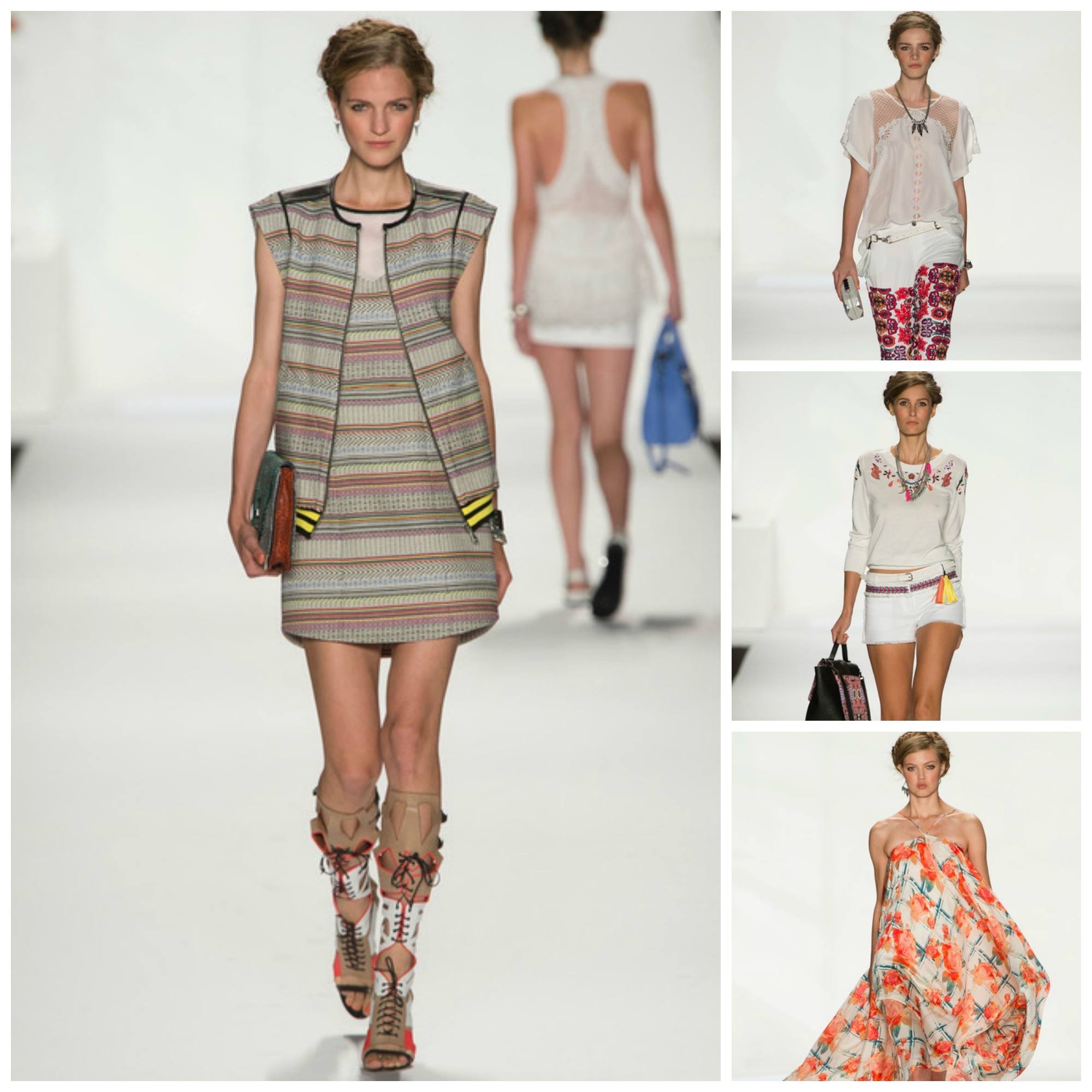 Rebecca Minkoff’s brand has exploded within the past few years. I can spot a girl carrying one of her bags on almost every block in Manhattan. For Spring 2014, the collection gathers inspiration from Latin America, and I think Minkoff did an excellent job of translating this into the looks. She incorporated elements from this idea such as detailed floral embroidery and fabrics similar to artisanal blankets. As always, the accessories were on par, with gladiator sandals very prominent throughout the collection. The show stopper for me was the billowing floral silk dress. How perfect will that be for warm weather parties?