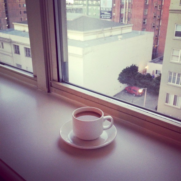 But I am not one to dress myself for public view before coffee so I ordered a pot of to be delivered to my room. It arrived quickly and with a smile. I enjoyed it quietly in my pajamas while watching San Francisco wake up.