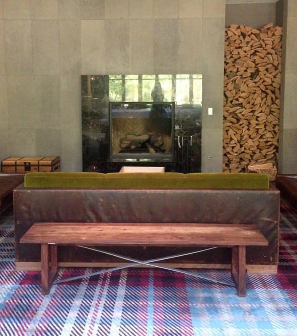 Upon arriving at Andaz Napa, we were greeted warmly and shown to the lobby where we were asked to have a seat while we waited to be checked in. We were offered a glass of Napa Valley wine, which I happily accepted, and were each given our room key and necessary check-in information while enjoying the comforts of their chic lobby.