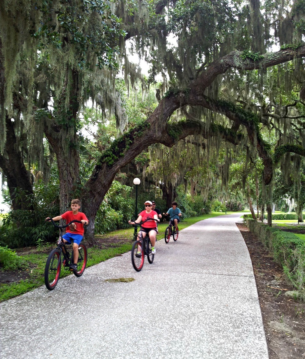 The Jekyll Island Club Hotel, rich with its affluent millionaire club’s history, is in the center of all the action on this beautiful, coastal island. Hotel guests may rent bikes right at the hotel for $10 for half-day or $18 for all-day use. Bikes with training wheels and bikes with infant seats are in the inventory, too.