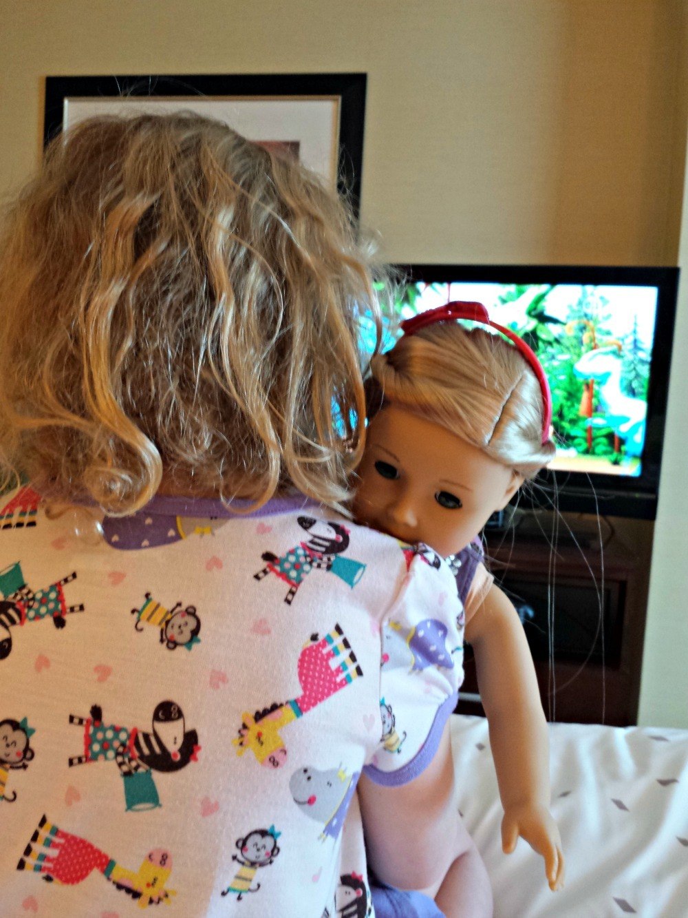 Renaissance Charlotte South Park Hotel for the Deluxe American Girl Pink Experience with my five-year-old daughter in November. We experienced a festive check-in with pink hot chocolate, pink cookies and milk on arrival, complimentary breakfast every morning, and a very pink decorated Renaissance hotel room. Liza’s doll, Isabelle, received a doll-bed, pink slippers and a luxury bathrobe, all of which we could take home with us.