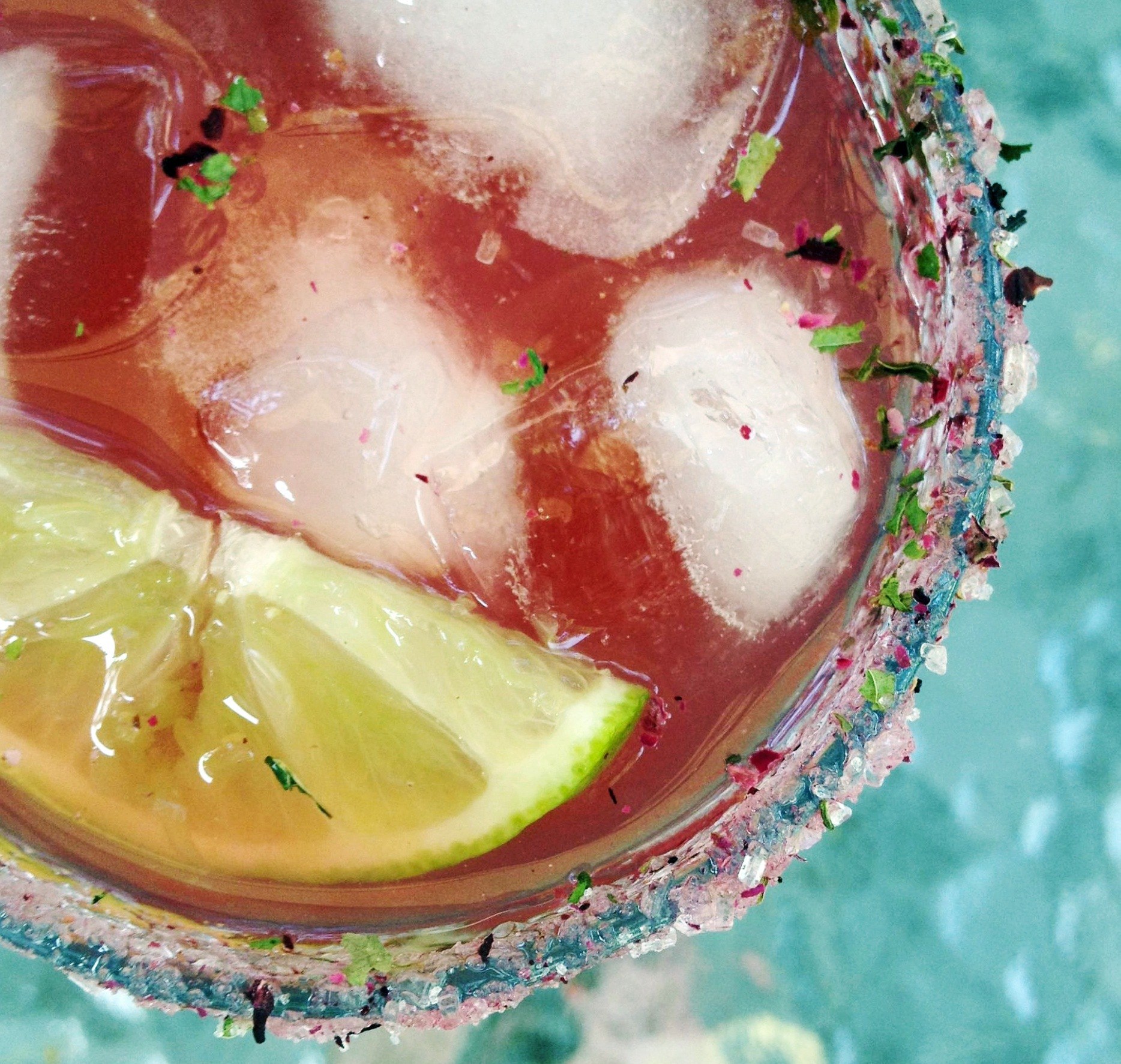 .5 ounce fresh lime juice. Shake, strain into a sugar rimmed glass and enjoy!